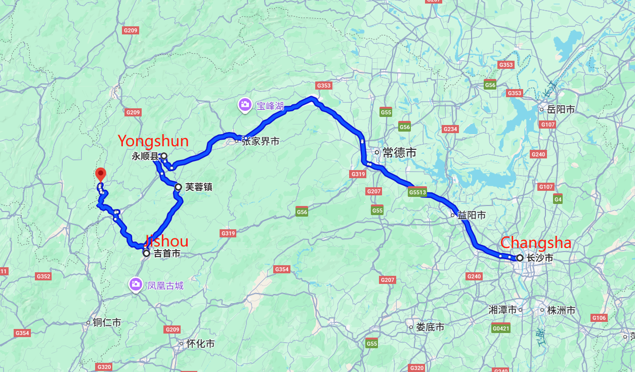 -Morning:Take a high-speed train from Changsha South Station to Zhangjiajie West Station(about 2 hours),then transfer to a car to Yongshun County(about 1.5 hours)and check in at the hotel.